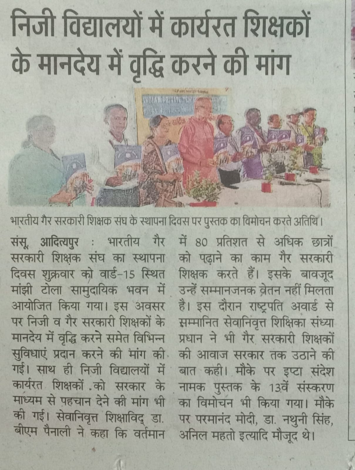 भारतीय गैर सरकारी शिक्षक संघ सह समाज सेवी संस्था